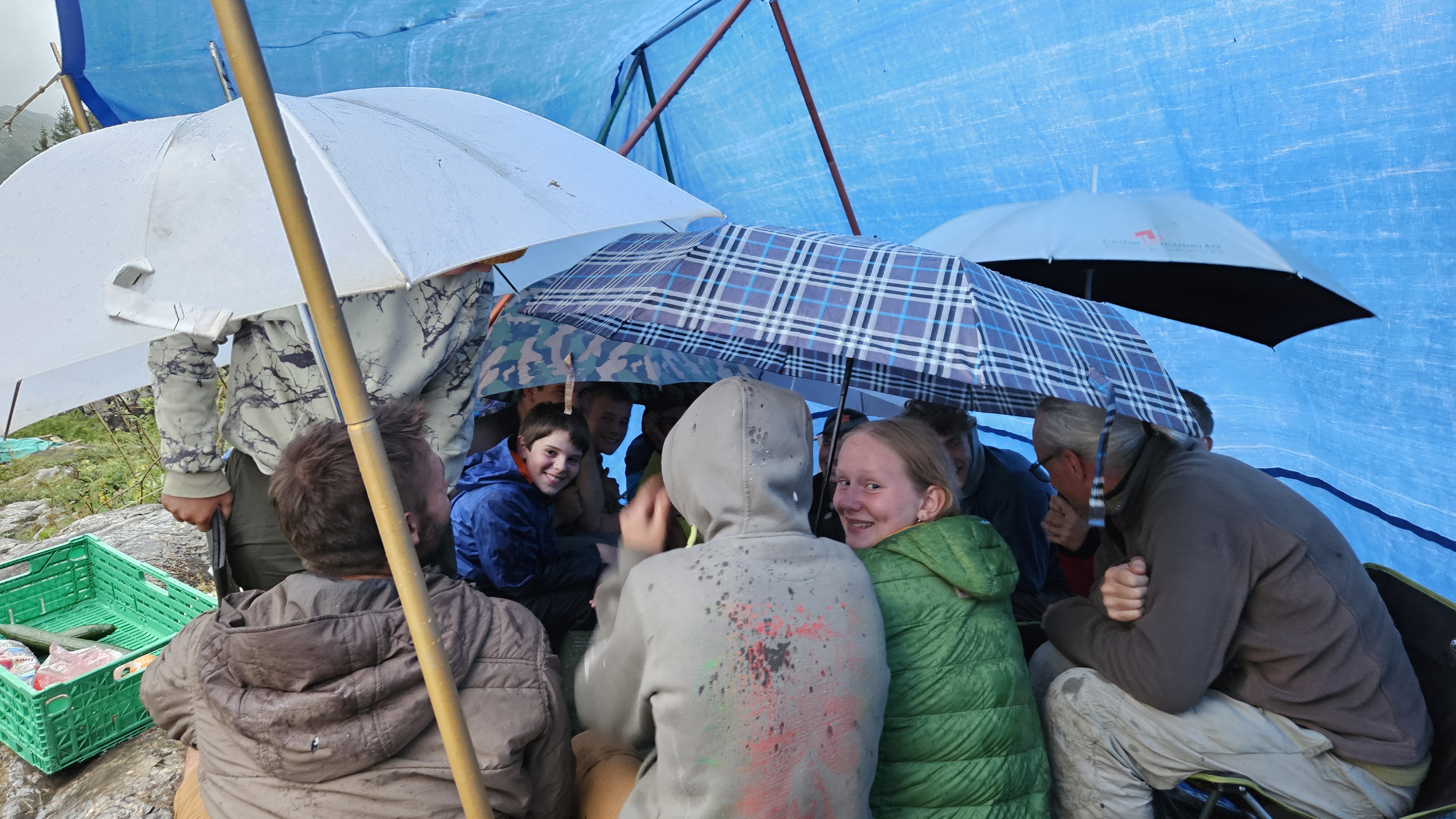 Nicht ohne zuvor das Hochwasser beim Hölloch E1 bestaunt zu haben, richteten wir das Lager am 2. August ein. Für viele war es das erste Mal und entsprechend eindrücklich! Am Abend sorgte der Besuch einiger AGHler im Rahmen des Grillabends für einen geselligen Lagerstart.